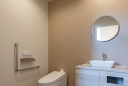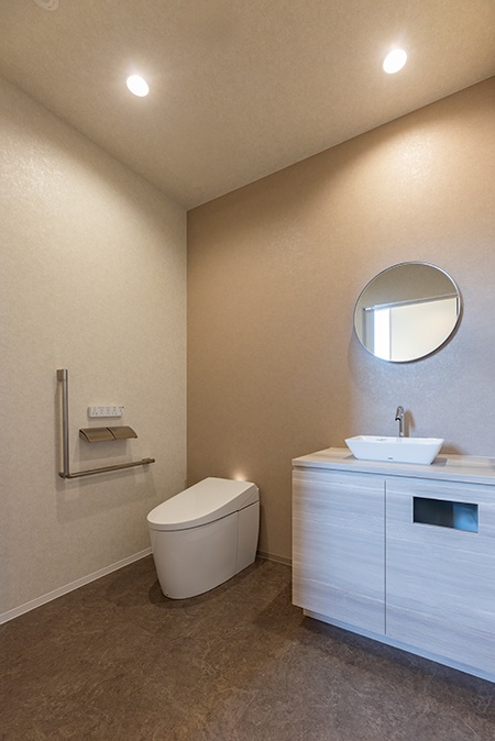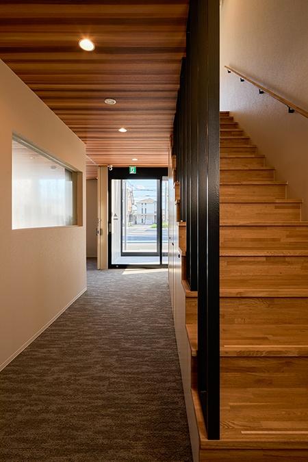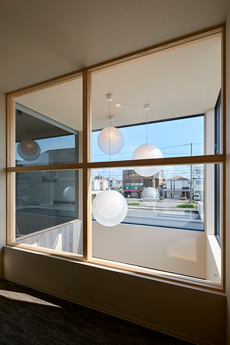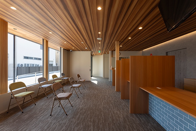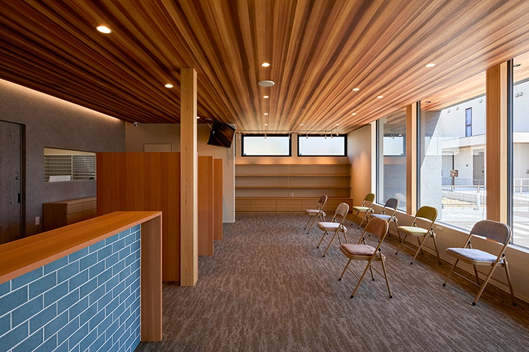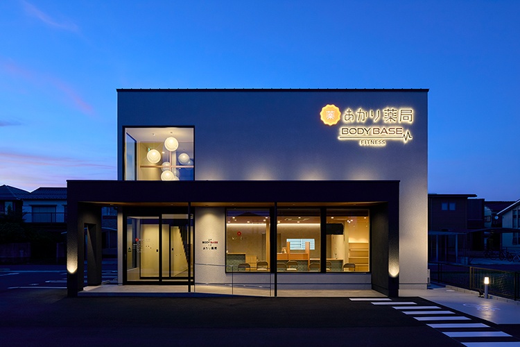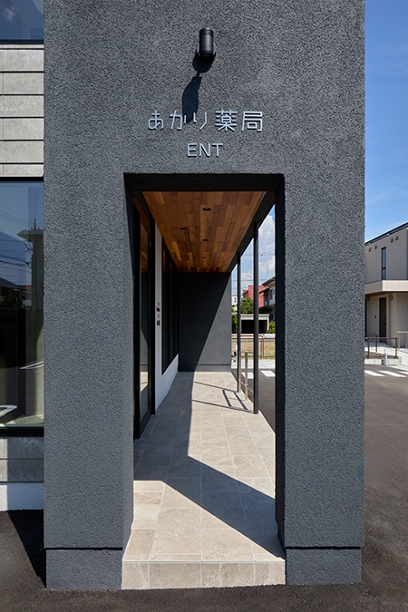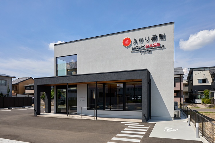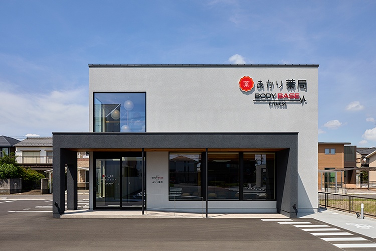 敷地は閑静な住宅街に位置する。薬局と合わせて健康維持のフィットネス空間を合わせた建築を求められた。外観は地域の街並みに対して違和感を与えないシンプルな外観で納めた。内部の空間については訪れた人々が安らぎを感じてもらえるよう、落ち着いた温かみのある佇まいとしている。地域の暮らしに根ざし、健やかな日々を支える建築として、長く愛され続ける存在となることを願います。