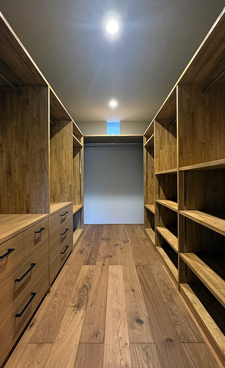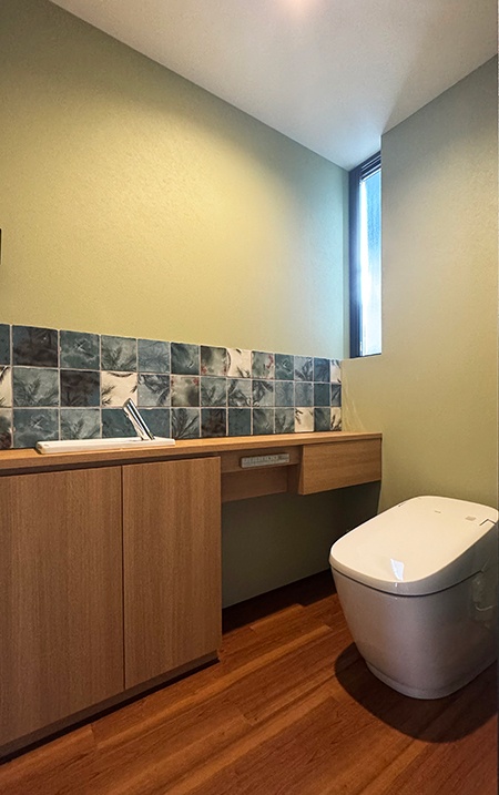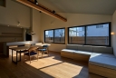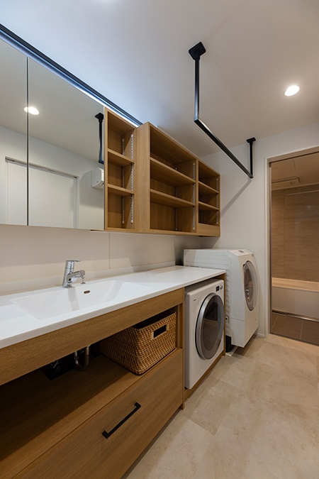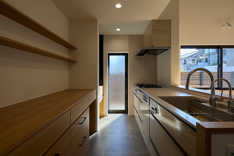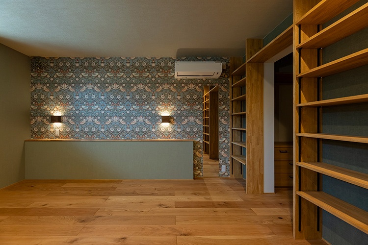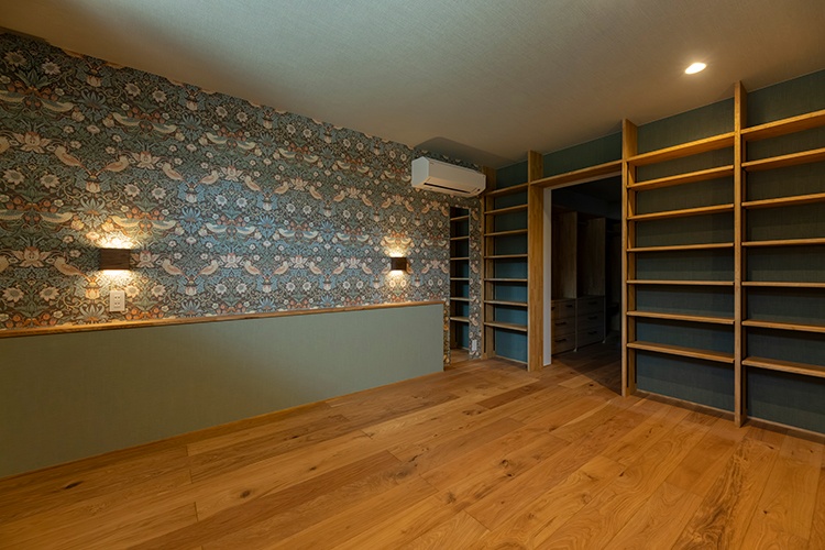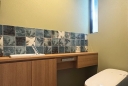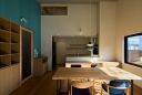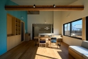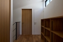 2階には子供室のみを配置し、LDK・寝室・水回りを1階にまとめることで、夫婦は将来を見据えて平屋のような生活ができる計画とした。上下階のバランスを取りながら吹き抜けを設けることで、1階と2階を緩やかにつなぎ、家族同士の距離感を適度に保つことができている。さらに、ソファーコーナーや2階の図書コーナー、書斎など小さな居場所を散りばめることで、家族それぞれが自分の居場所を持ちながら、ひとつの大きな屋根の下で共に過ごしていける豊かな家になったと思う。
